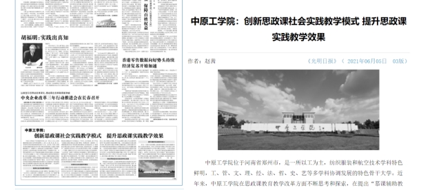 《创新思政课社会实践教学模式 提升思政课实践教学效果》(作者:赵茜)一文刊登在《光明日报》2021年6月5日第三版。
